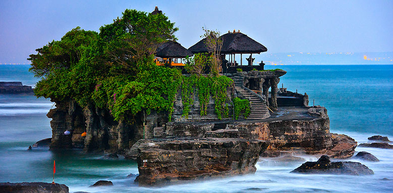 This iconic Balinese temple sits on a rock formation on Bali’s southwestern shore near the city of Seminyak. Surrounded by crashing waves, it’s one of the island’s most important sea temples, paying homage to the guardian spirits of the sea. When you visit be sure to stay for the dramatic sunset.
